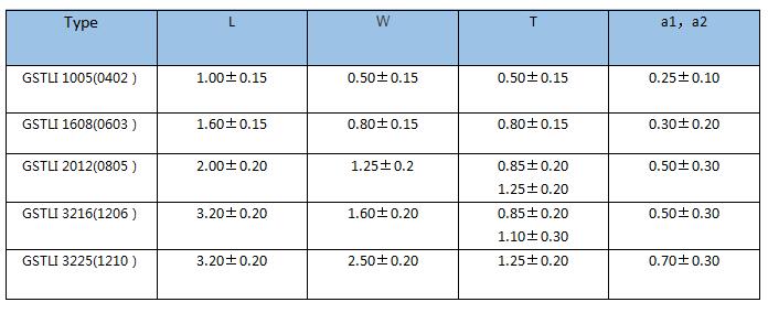 四、疊層片式磁珠外形尺寸列表: